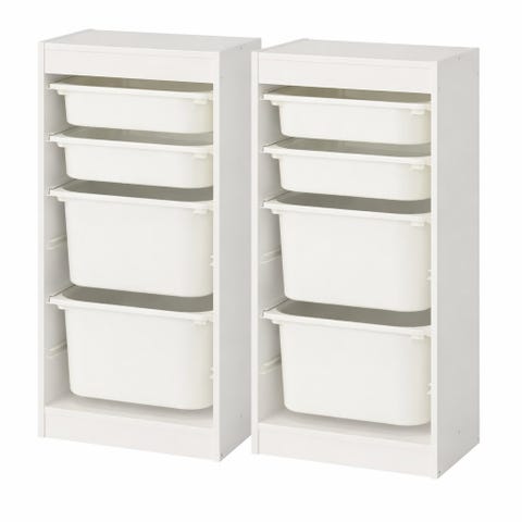 IKEA förvaringshylla med plastlådor vit/rosa för barn (Två)