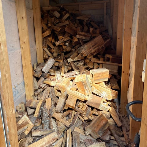 Björkved staplad ved