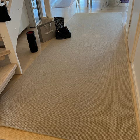 Ikea matta i beige färg med vävt rutmönster. Rektangulär modell som passar exempelvis vardagsrum, sovrum eller hall. Köpte i oktober 2025. Säljas pga flytt.