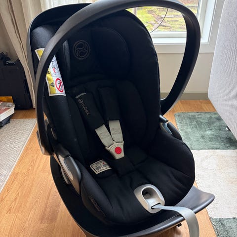 Säljer vårt babyskydd från Cybex med tillhörande bilstolsbas. Babyskyddet går även att använda med fordonets säkerhetsbälte. Alla delar som tillhör babyskyddet, såsom inlägget för nyfödda, är med.