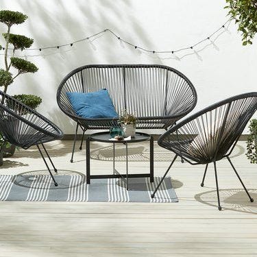 Denna grupp passar till alla sorters utemiljö, både balkong, uteplats och veranda då den är liten och smidig med plats för många personer. Man kan ställa gruppen precis som man vill, då alla delar är lösa. Den kan vara som en soffa, fåtöljer, sittbänk osv. Man väljer själv hur man vill ställa den. Säljes pga flytt