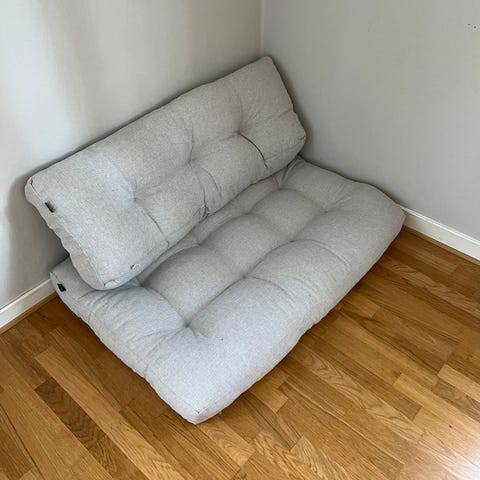 2 st Mörkgrå trädgårdsdynor i bra skick.