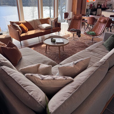 Jag upplever soffan som både rymlig och skön, i fint skick. Säljes pga flytt, bäst för oss är att den hämtas runt Valborg, men med viss flexibilitet