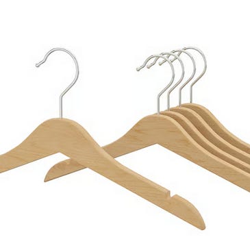 Set med 20 robusta klädhängare i trä med metallkrok – perfekt för att organisera garderoben på ett snyggt och effektivt sätt. Passar både vardagskläder och tyngre plagg.