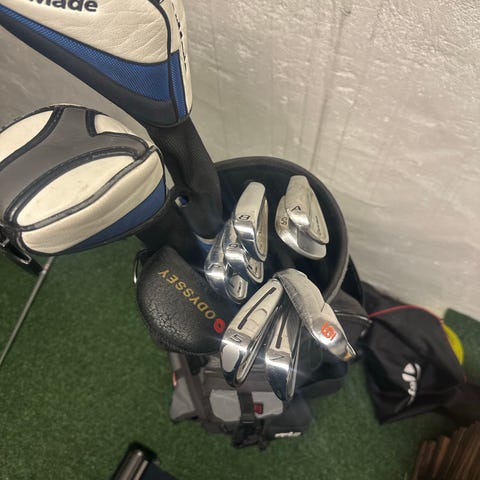 Golfvagnar Clickgear bra skick med paraply och flashållare 600 för den vita golfvagnen 450 för den blåa