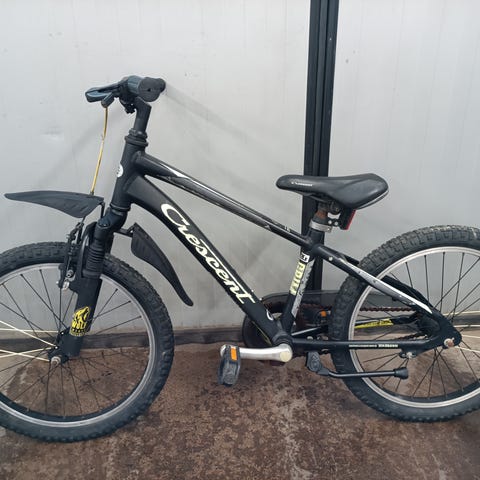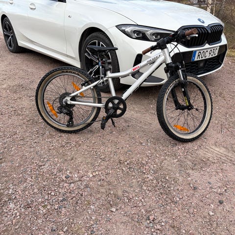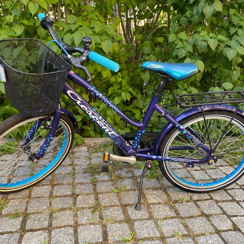 Barncykel med 20" hjul i turkos färg. Cykeln har pakethållare bak och korg fram. Utrustad med fotbroms bak och handbroms fram, kedjeskydd samt stöd.
