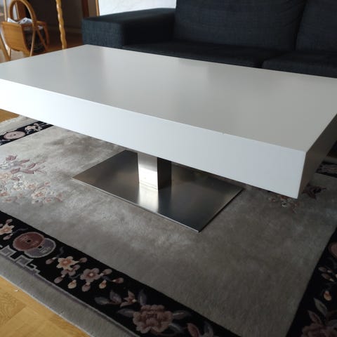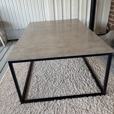 Stabilt soffbord i modern design. Bordet har en snygg bordsskiva i stenliknande laminat och svarta metallben. Gott om plats för umgänge.