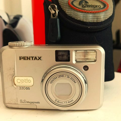 Olympus Trip AF 50 kompaktkamera i silverfärg. Kameran är en analog 35 mm kompaktkamera med autofokus. På framsidan finns inbyggd blixt och Olympus 28 mm-objektiv. Baksidan har Quartzdate-funktion med display och knappar för läge, val och inställning av datum. Kameran har enkel reglageutformning med avtryckare på ovansidan. På bild syns även ett Olympus-fodral i svart material som skydd vid förvaring och transport.
