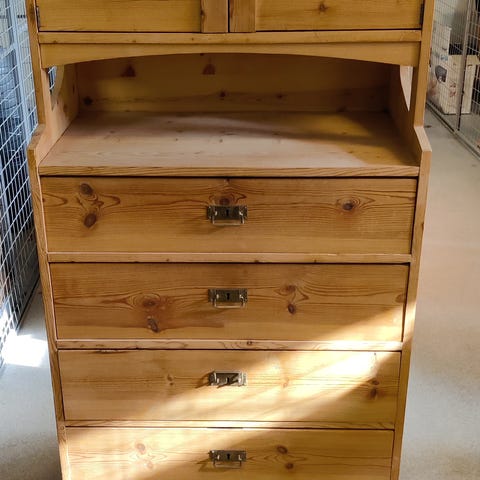 Stor byrå som ryms mycket. Finns små krokar i den.