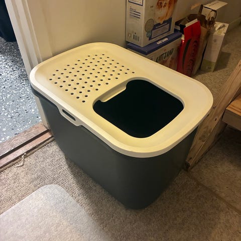 Kattlåda och två rostfria skålar