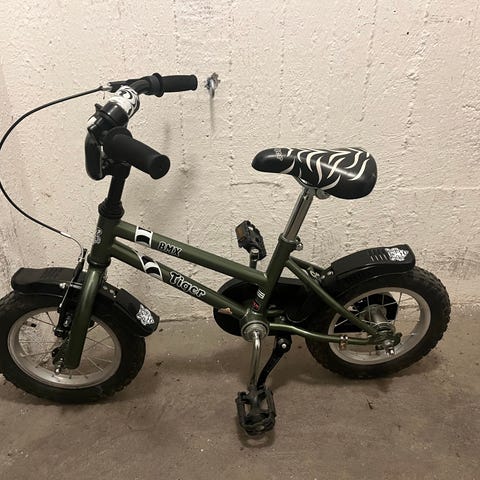 BMX 12” som båda våra barn lärde sig cykla på (vid första försöket!).