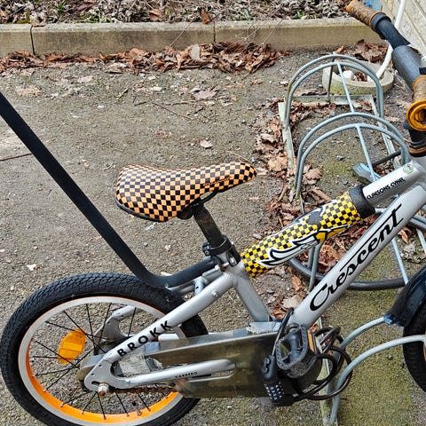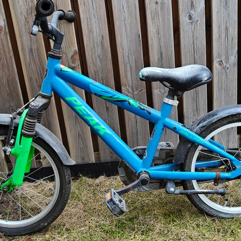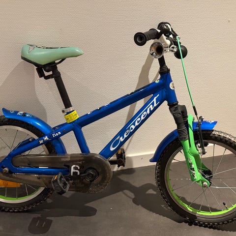 Crescent barncykel med 16" hjul i blå och grön färg.