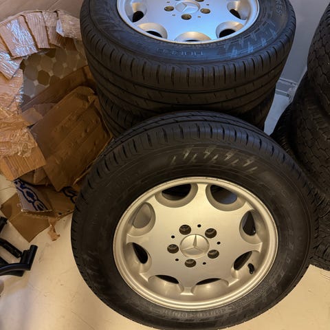 1 st däck med fälg, passar Audi A6. Har varit reservhjul så det är knappt använt.