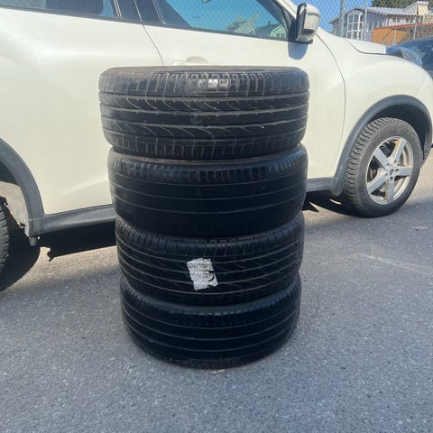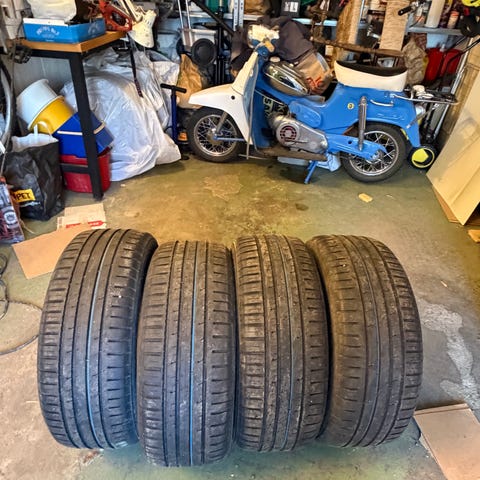 Rensar nu lite av sommardäcken som blivit över från gammla bilar då sommaren börjar komma fram