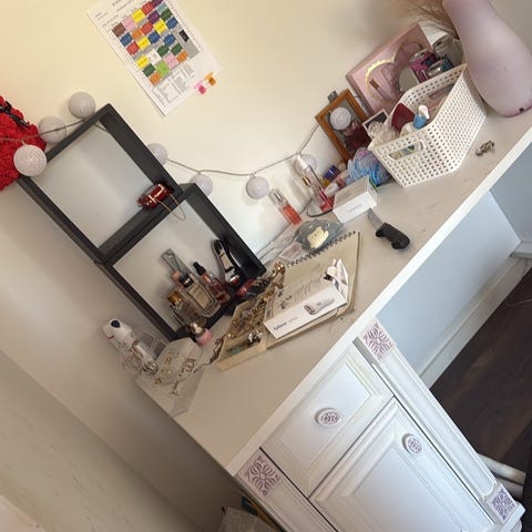 Ett bra skrivbord med gott om förvaring i bra skick.