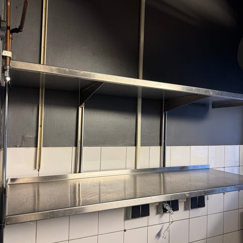 Rostfria hyllplan på ställbara skenor