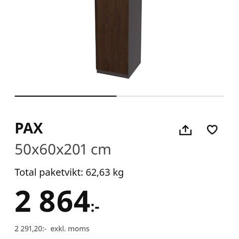 Säljer en bra paxgarderob som inte längre får plats efter renoveringen.