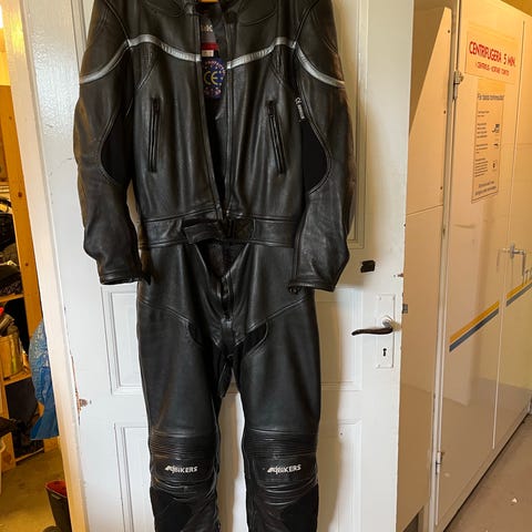 Dam mc-kläder i skinn storlek 40 och storlek 39 på stövlarna.