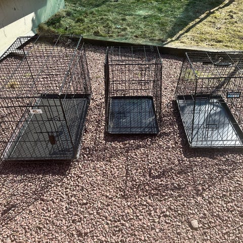 Creston Skråvägg L hundbur i svart metall. Bur med snedvägg och solid bottenbricka i plast. Mått ca 92 x 63 x 72 cm (DxBxH). Passar för hundtransport eller som viloplats inomhus. Metallgaller runtom ger god överblick och ventilation, och buren har en löstagbar botten för enklare rengöring. Knappt använd och i bra skick, går lätt att fälla ihop vid behov. Säljs för 250, originalpris på XXL är 599. Bild 2 och 5 kommer ifrån XXLs hemsida, där kan man läsa mer om buren. Färgen har skavts av lite precis där man öppnar och stänger den, annars är den i väldigt bra skick.