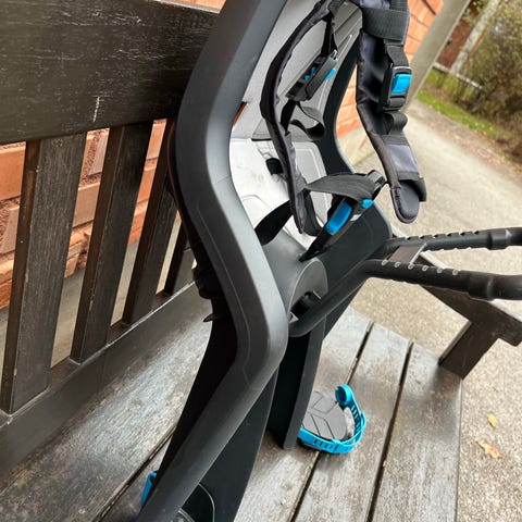 Thule RideAlong är en barnstol som fästs på ramen. Den går att luta och har justerbara fotstöd.