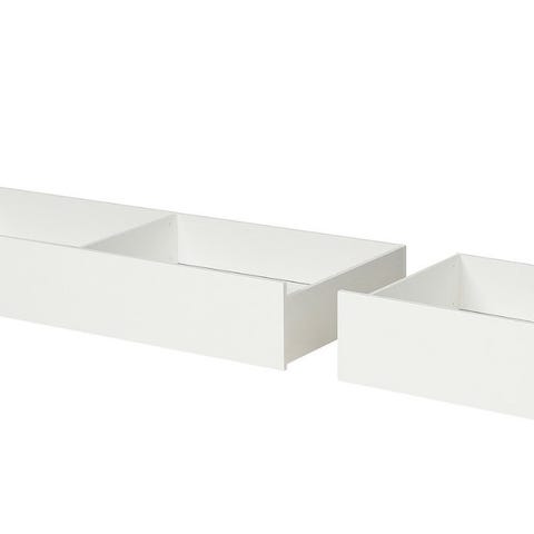 2 st vita sänglådor i furu från Mio. Bra skick men lite repor och skav på undre delen av fronterna samt att kvistar i träet syns genom färgen. Mått: bredd: 97,5 cm, djup: 88,5 cm,höjd från golv: 20,3 cm. Frontdelen är lite högre och längre än själva lådan, utan frontdelen har lådan bredd 91,5 cm, djup 86,5 cm, höjd 16,5 cm från golv. 400 kr/st eller båda för 700 kr.