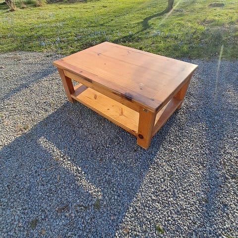Soffbord i massiv trä, rektangulärt, naturfärg, nitar