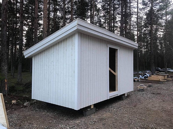 MÄRK!! Priset gäller ex plåttak paketet och yt golvet (23 mm råspont), samt att ytterpanelen är 2nd sortering liggande stockpanel 22x120 ALLTSÅ INTE VIT
