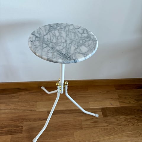 Skivan i marmor är 25x25 cm