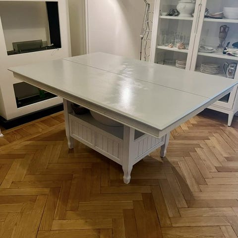 Vackra vitmålade ekmöbler 40 talet bord 2 iläggsskivor 6 st stolar