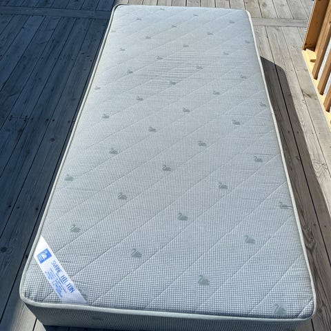 IKEA Malvik madrass med Lönset ribbotten. Madrassen är vit.