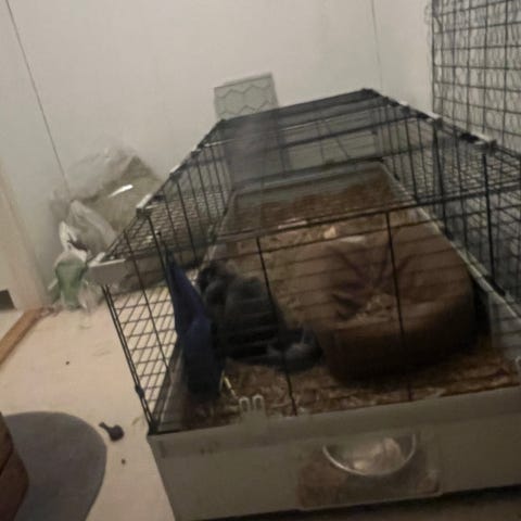 Automatisk foder- och vattenautomat för smådjur i bur, till exempel kaniner, marsvin eller andra gnagare. Setet består av två behållare i grön plast med transparent överdel, en för torrfoder och en för vatten. Båda enheterna monteras på burens galler med ett runt fäste på framsidan. Foderbehållaren har lutande ramp som leder fodret ned i skålen. Vattenbehållaren har integrerad skål där vattnet fylls på automatiskt från behållaren ovanför. Plastskålarna är avtagbara för enklare rengöring och påfyllning.