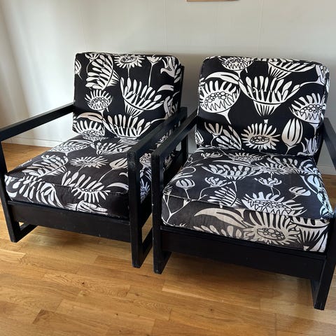 Säljer två klassiska fåtöljer från Slettvoll. De har några år på nacken men är i fint skick bortsett från hål i tyget på ena och slitage på tyget på andra. Det går att byta tyg hos Slettvoll om man önskar. Rök- och djurfritt hem. Inköpspris ca 12000 kr/styck. Mitt pris: 3000 kr för båda. Endast hämtning och Swish.