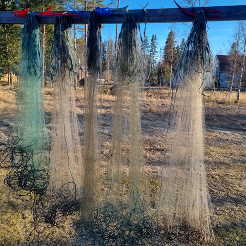 Lax/öring nät Nya. 65, 75, 80, 85 mm maska ( helmaska 130, 150, 160, 170 mm ) 3. 4,5. 6 meter djupa Längd från 60 meter. Pris från 500kr per nät/ garn