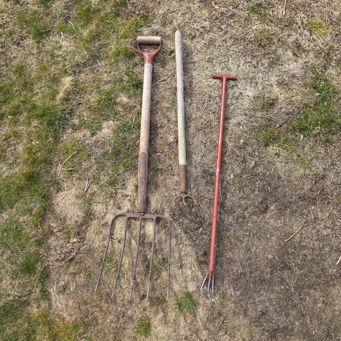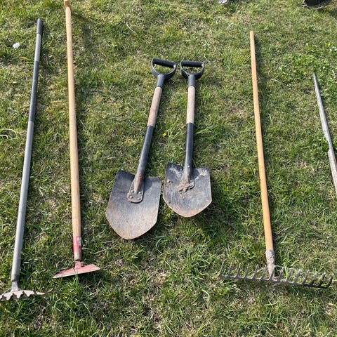 Diverse trädgårdsverktyg – kratta, sekatör m.m.