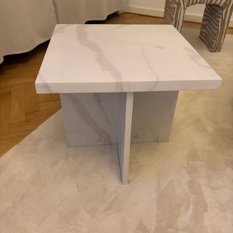 Pedestal med marmorskiva och vita ben i metall