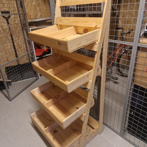 VIKTIGT, ena hörnet saknas som håller ihop de tre stagen. (Se bild) Enkelt fixat med lite silvertejp och kartong.