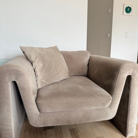 Sammetsfåtöljer i mörkgrått. Kommer från ett rökfritt hem utan husdjur. 2 riktigt fina och sköna fåtöljer