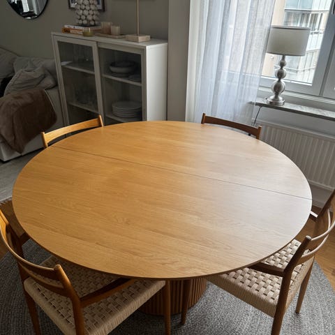 Nu säljer vi vårt matbord från Mio som är sparsamt använt, där det finns rum till 6-8 personer. Det finns inga repor/defekter.