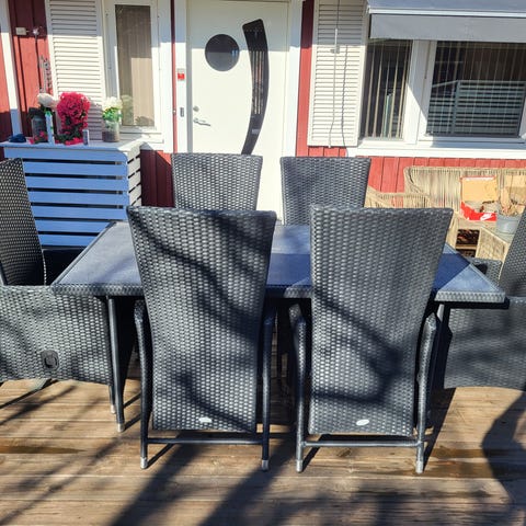 Snygg utemöbel i konstrotting – 6 stolar + stort bord - Perfekt för sommaren!