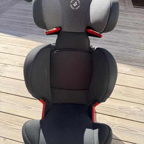 Maxi-Cosi bälteskudde bilbarnstol. Bilbarnstolen är svart med vadderad sits, rygg och sidokuddar. Justerbart ryggstöd och huvudstöd ger stöd för barnet under bilfärd. Avsedd för användning tillsammans med bilens trepunktsbälte. Passar barn inom den vikt- och längdklass som motsvarar 16-36kg enligt tillverkarens anvisningar. Lämplig som framåtvänd bältesstol i personbil.