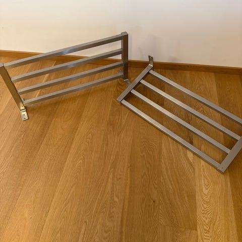 4 st golvgavlar i svart. Använda men överlag i gott skick. 1 gavel har fått färgstänk på sig - se bilder. Hämtas i Stockholm, Hagastaden. De 4 gavlarna säljs ihop.