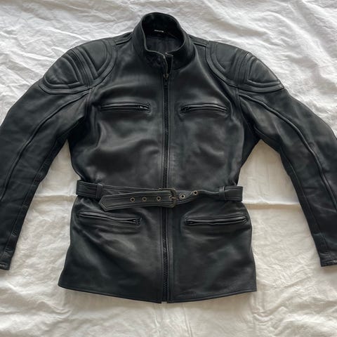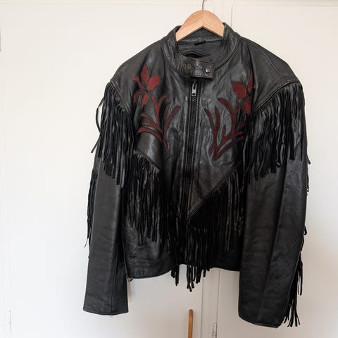 4Bikers mc-jacka skinn svart fransar storlek 42