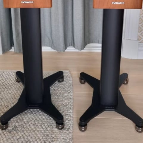 Ett par Dynaudio 3x stativ komplett med spikes och "washers" för att skydda golvet.