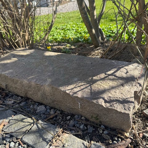 Min farfar gjorde dessa grindstolpar i Bohuslän. Grå granit. Höjd över mark 116 cm. Stolpe 1: 159 cm, stolpe 2: 150 cm. 10*22 cm tjocka.