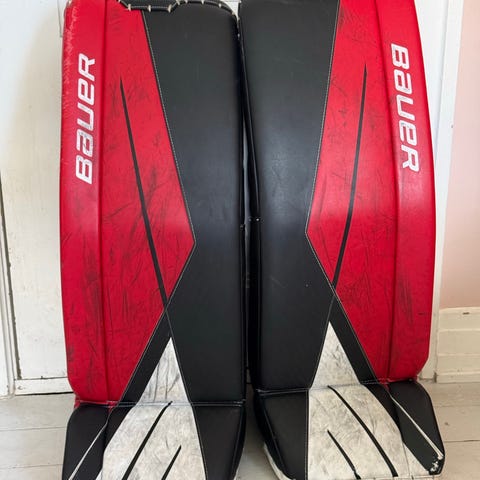 Bauer GSX knäskydd för ishockeymålvakt, seniorstorlek, i svart, grått och blått.
