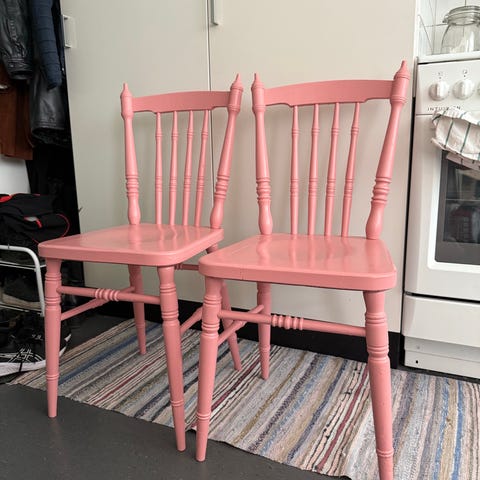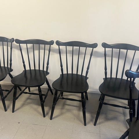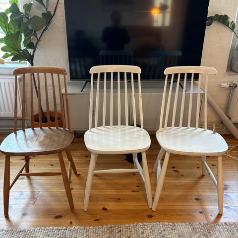 Stolarna är hela och stabila. Patina finns från tidens tand. Originalfärgen.