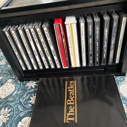 The Beatles The Original Studio Recordings CD-box med samtliga 13 originalstudioalbum digitalt remastrade i stereo. Boxen innehåller totalt 217 låtar samt bonusmaterial. Förpackningen är en samlingsbox i deluxeutförande med albumen presenterade i separata fodral. Passar för den som vill ha en komplett samling av The Beatles studioinspelningar i ett enhetligt CD-format.