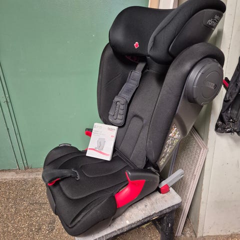 Bilkudden är avsedd för barn som använder bilens trepunktsbälte. Modellen har ryggstöd med sidostöd och armstöd med markerade bältesguider. Färg: svart. Passar för montering framåtvänd i bil enligt tillverkarens anvisningar. Den ena är fläckig men båda är tvättade. Priset är per st.0739992462/Carl