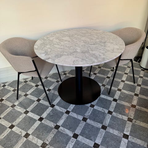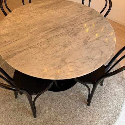 Marmorskiva och 4 st stolar i sammet..
