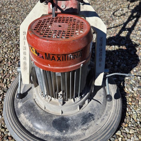 Maxima betongslipmaskin för slipning och bearbetning av betonggolv och andra hårda ytor. Maskinen är eldriven och har ett handtag med styrreglage samt hjul för enklare förflyttning. Utrustad med rund slipplatta i botten och skyddskåpa runt slipytan. Lämplig för användning vid renovering, utjämning och förberedelse av golv inför vidare behandling.